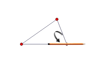 Wenn du das Endbild mit dem Anfangsbild oben vergleichst, so weißt du, um welchen Winkel du den Bleistift insgesamt gedreht hast. Dieser Winkel muss natürlich der Summe der Innenwinkel im Dreieck entsprechen.